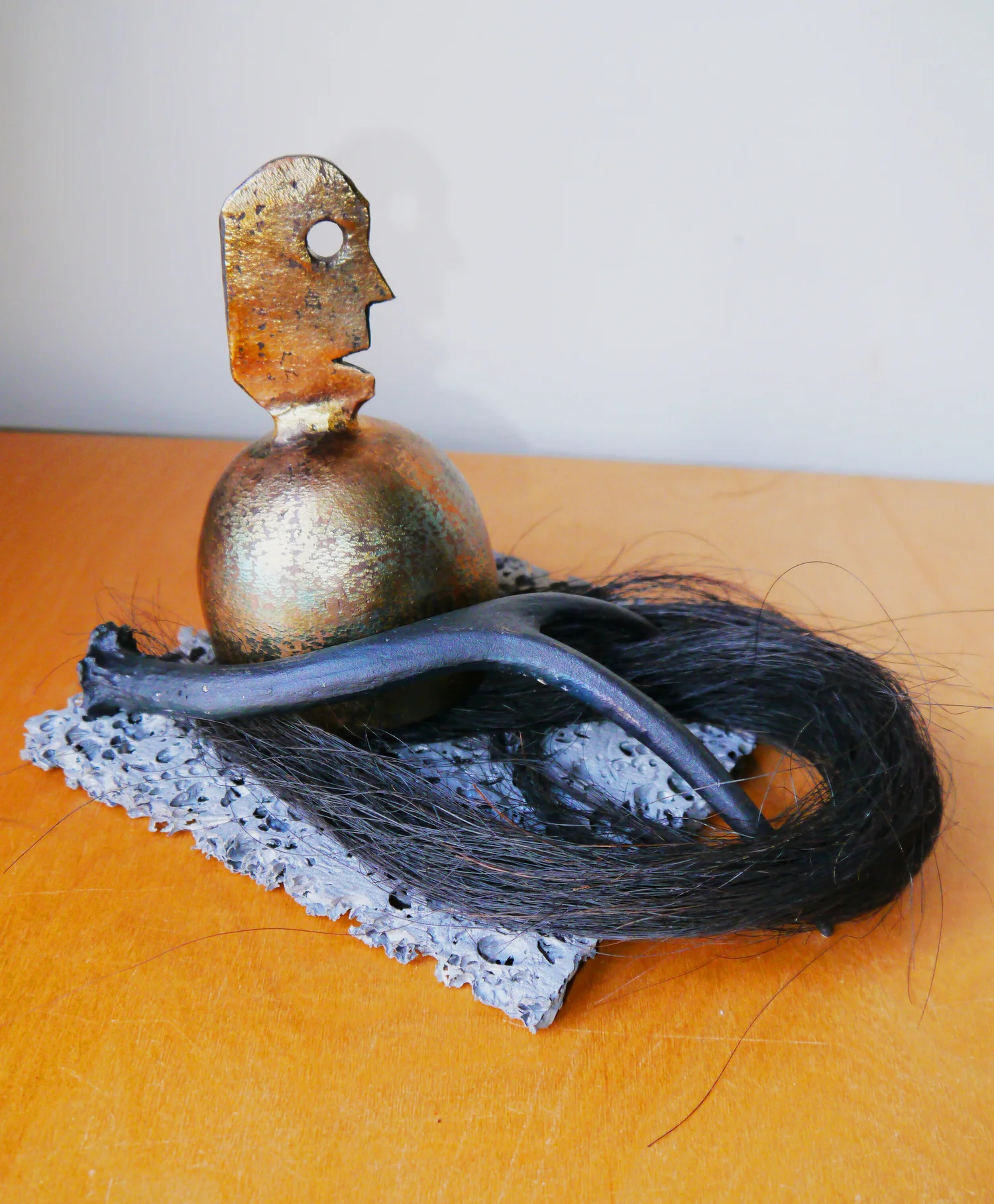 Cast Bronze, Cast Iron, Horse Hair, Blown Aluminum, Sinew, Wax